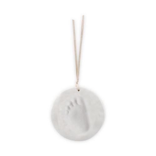 Realizzato con materiali semplici e idonei per bambini, il kit ha un diametro di circa 16 cm ed è estremamente intuitivo: basta premere delicatamente la mano o il piedino sul disco di argilla, attendere che asciughi e aggiungere la cordicella per appenderlo.