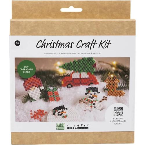 Kit di perline da stirare Nabbi BIOBeads per realizzare 5 creazioni natalizie: auto natalizia, renna, pupazzo di neve, elfo e regalo.